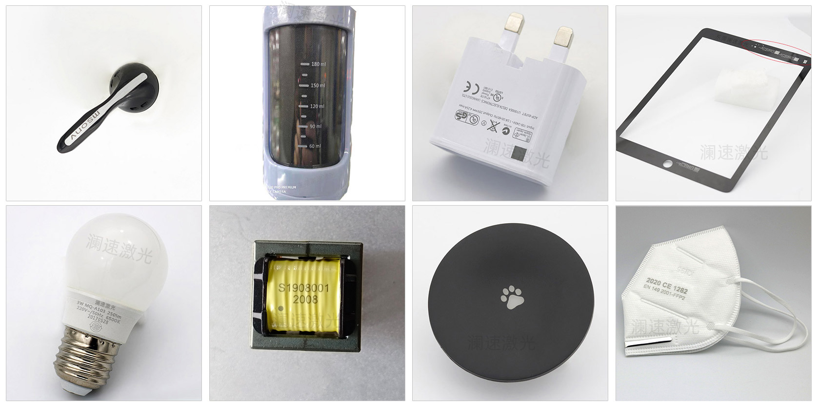 The UV laser marking machine is mainly based on its low-power laser beam, which is especially suitable for ultra-fine processing in the high-end market. Cosmetics, pharmaceuticals, video and other polymer materials are marked on the surface of packaging bottles. Better than ink coding and no pollution; marking and dicing of flexible pcb boards; micro-hole and blind hole processing of silicon wafers; two-dimensional code marking of LCD liquid crystal glass, hole punching on glass appliances, metal surface plating marking Plastic buttons, electronic components, gifts, communication equipment, construction materials, etc.