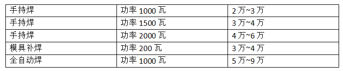 不同品牌和型號的設(shè)備價格也會有所不同,例如一臺功率為1000W的光纖激光焊接機價格在2萬到4萬左右,而功率更大的2000W-4000W以上設(shè)備價格就會超過6萬,詳情看下表《塘廈焊機價格表》: